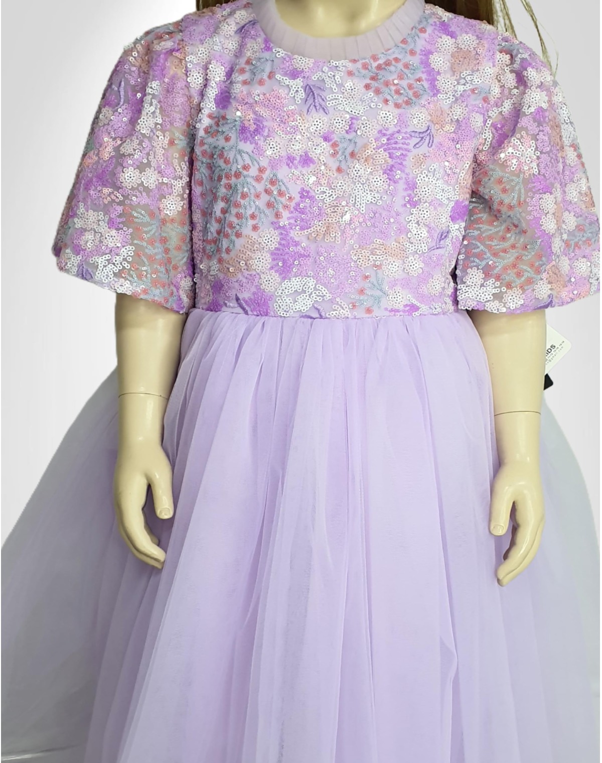 This charming frock features a fancy sequin-embroidered bodice, soft tulle skirt, and a smooth silky satin lining for a princess-perfect look.