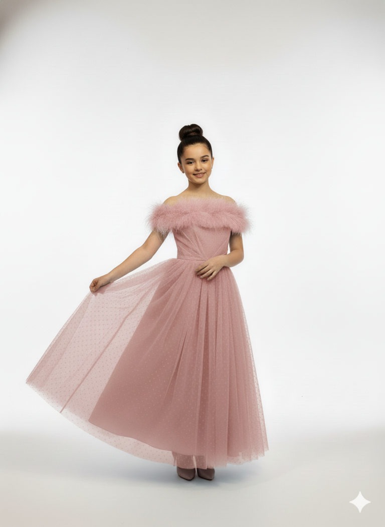 Silhouette: A-Line with a sweeping floor-length hem.