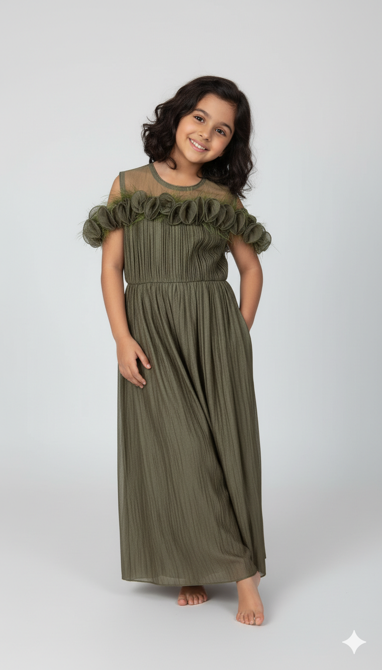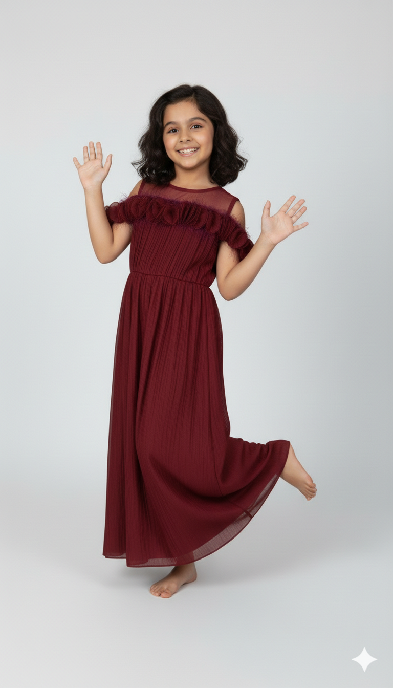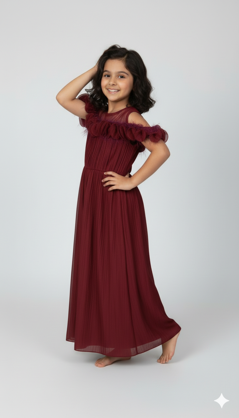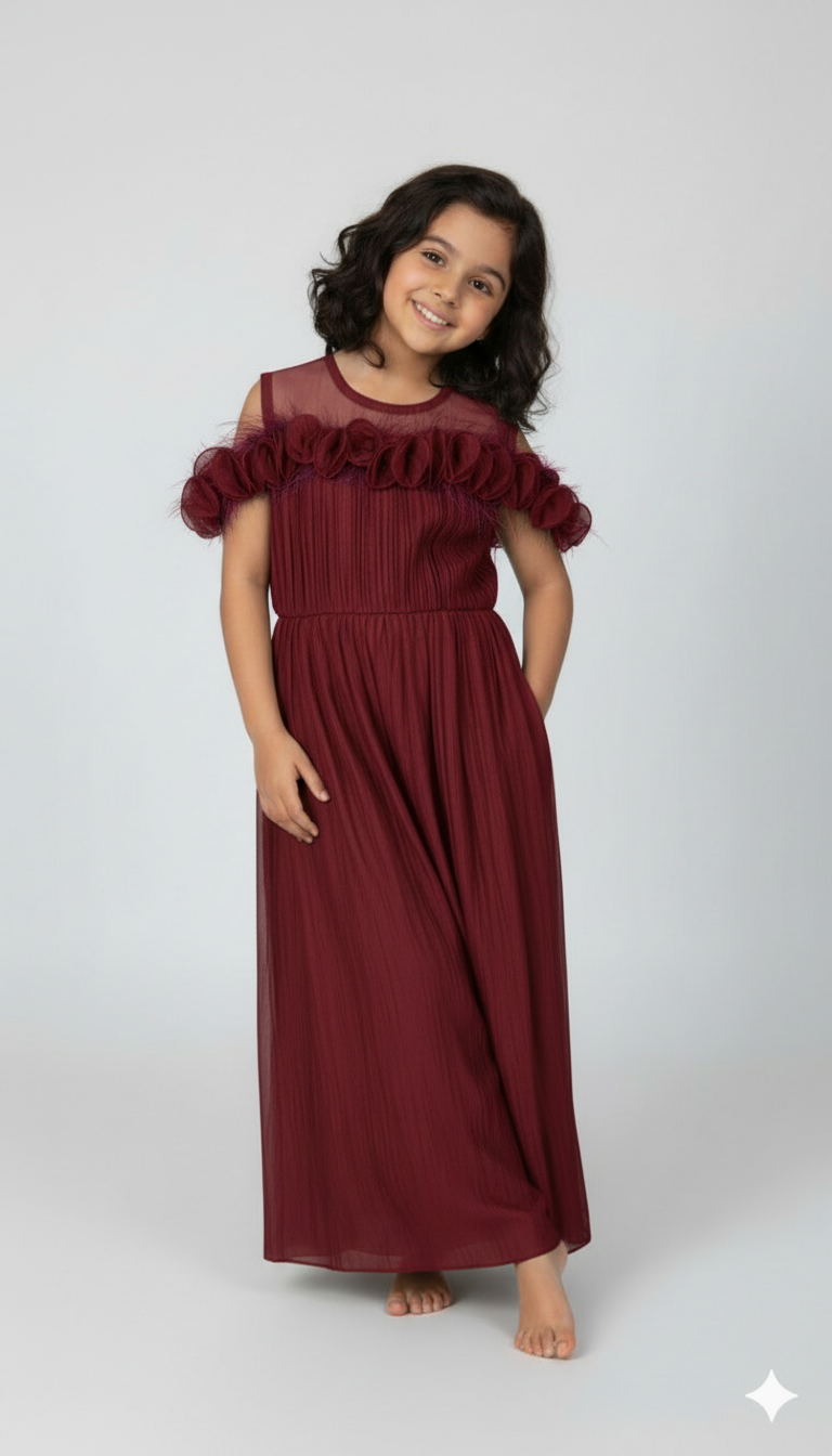 n elegant off-shoulder gown for girls, perfect for special occasions.