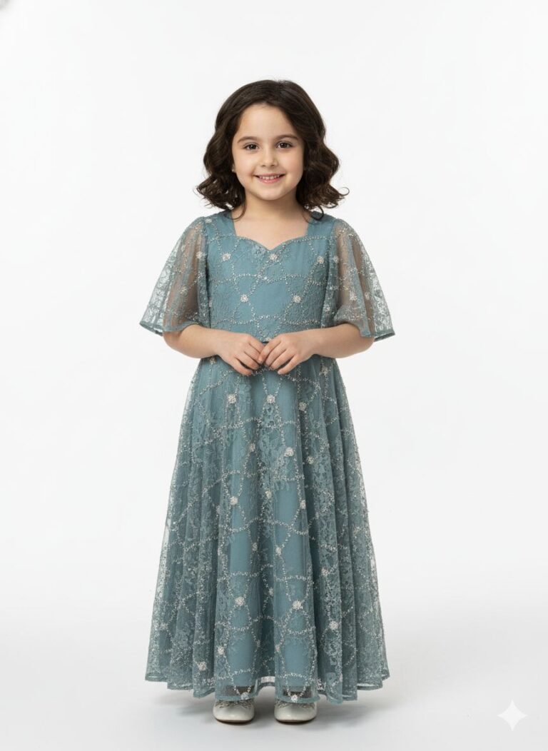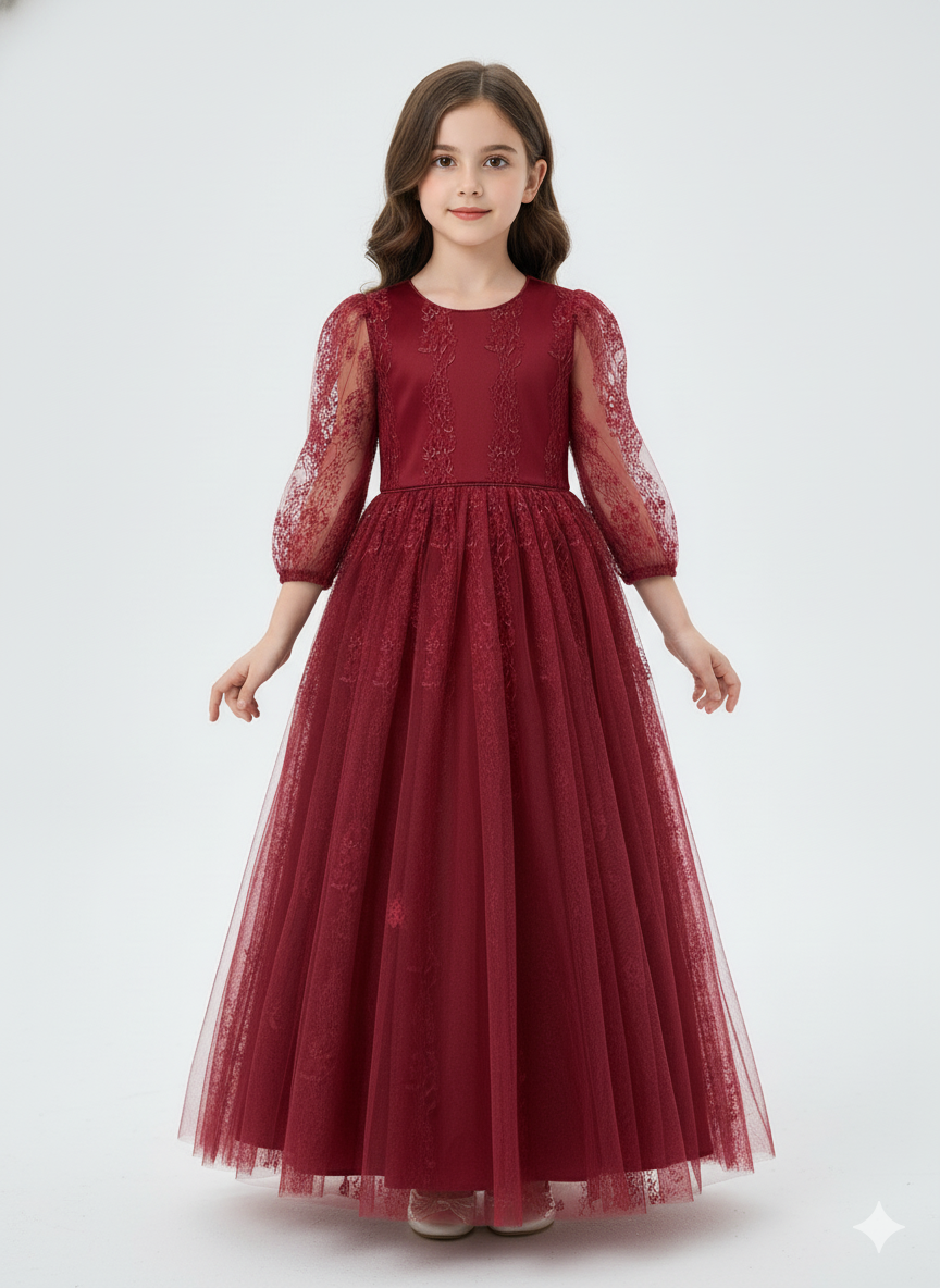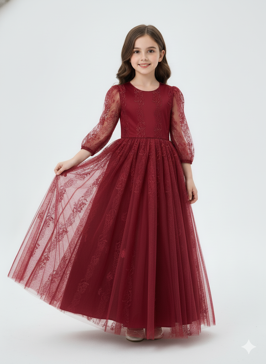 A rich lace dress for little girls, combining elegance with a soft princess-style look.