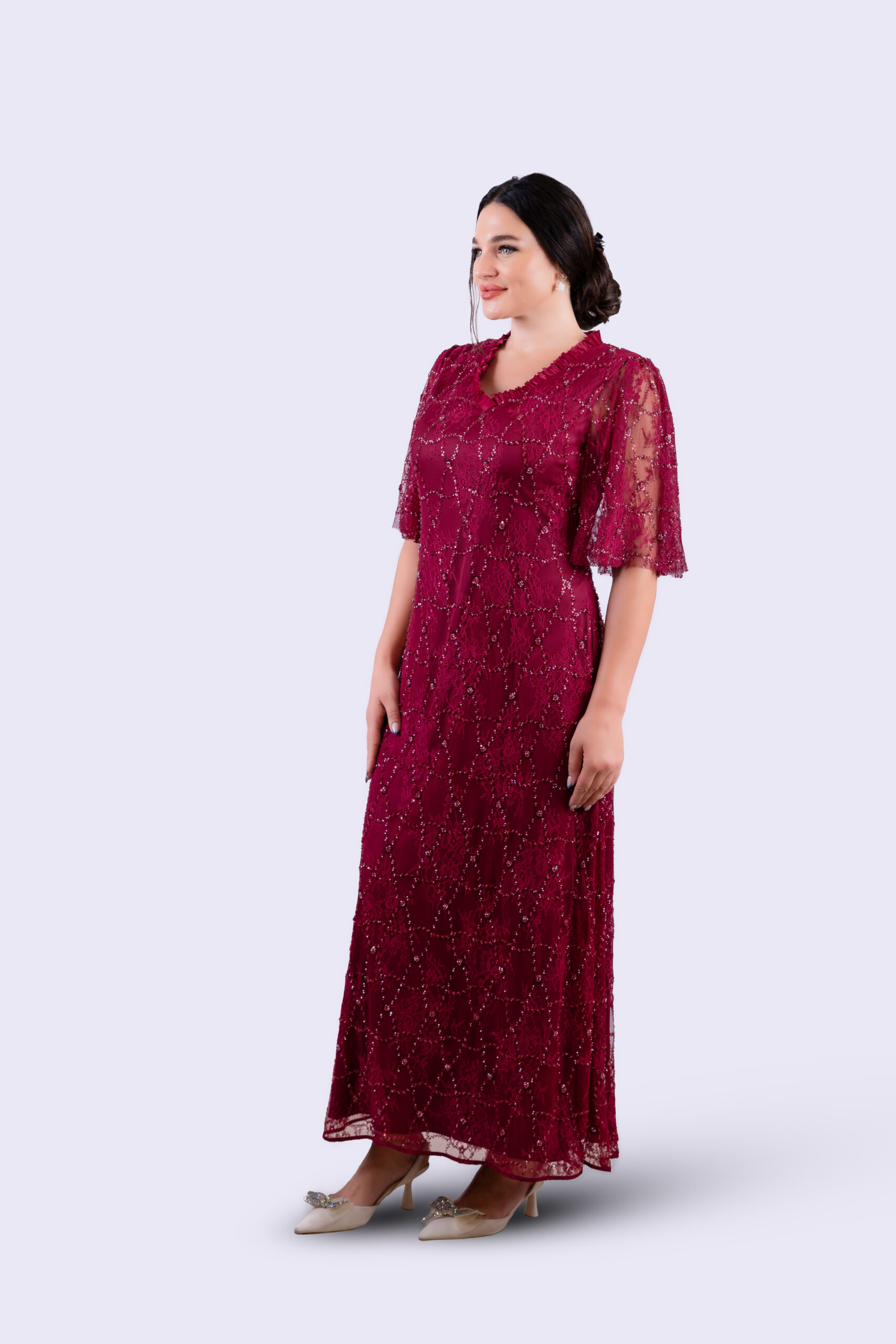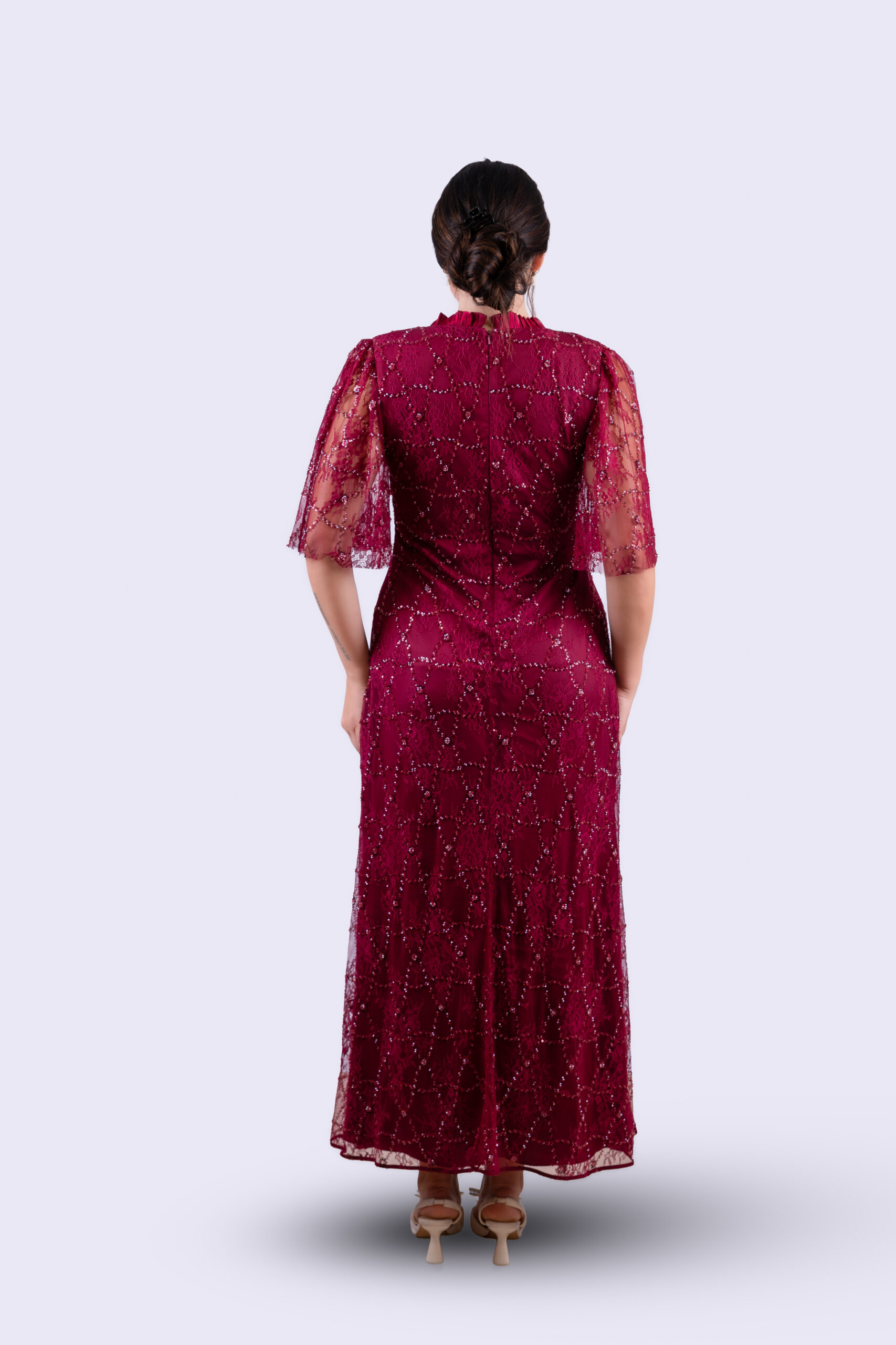 Step into the spotlight with this exquisitely detailed gown, where shimmering sequins and delicate lace create an unforgettable vision of elegance