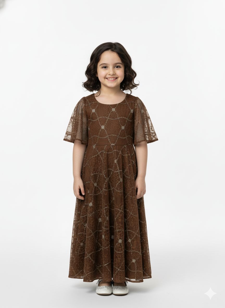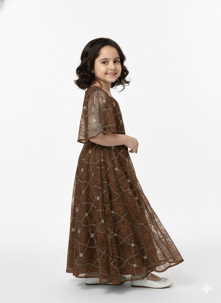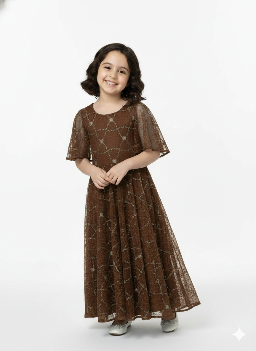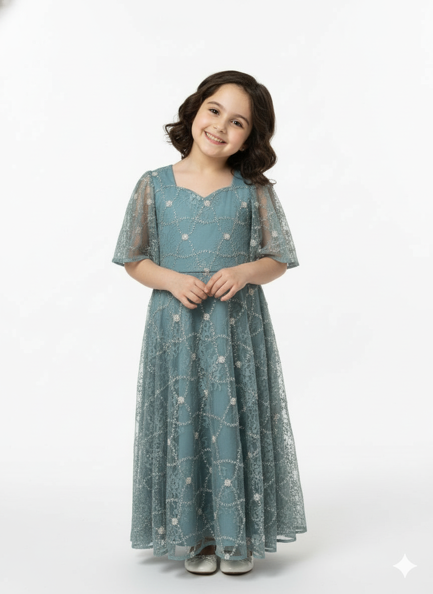 Kids frock with sparkling sequins and delicate pearl embellishments.