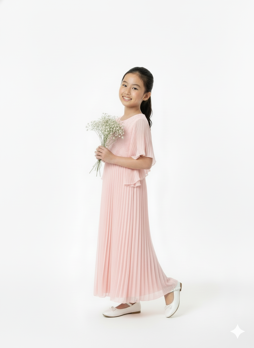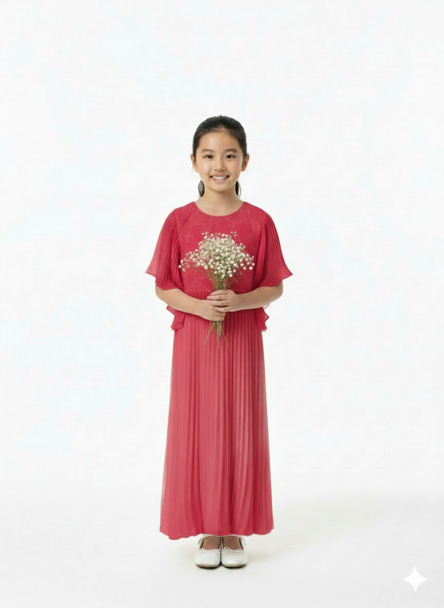 Soft pleated red maxi dress with an elegant flow, perfect for a graceful and charming look.