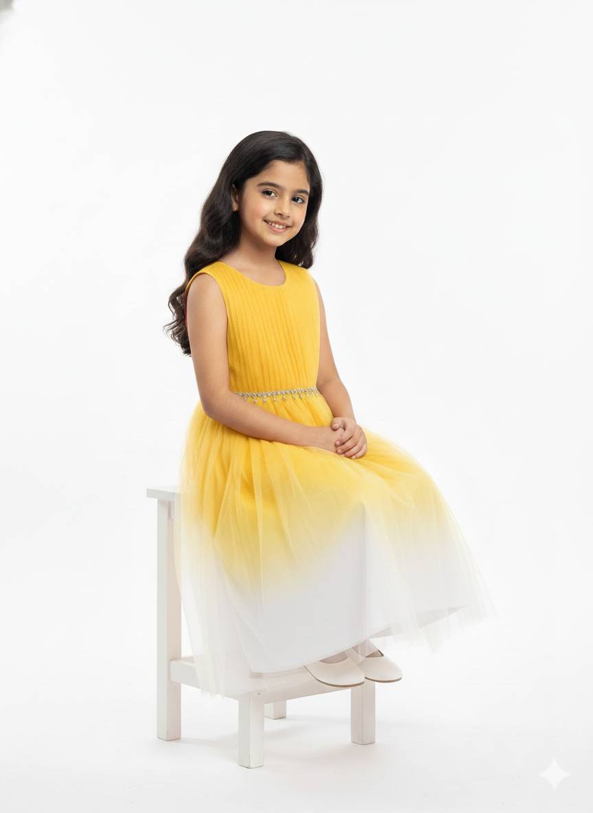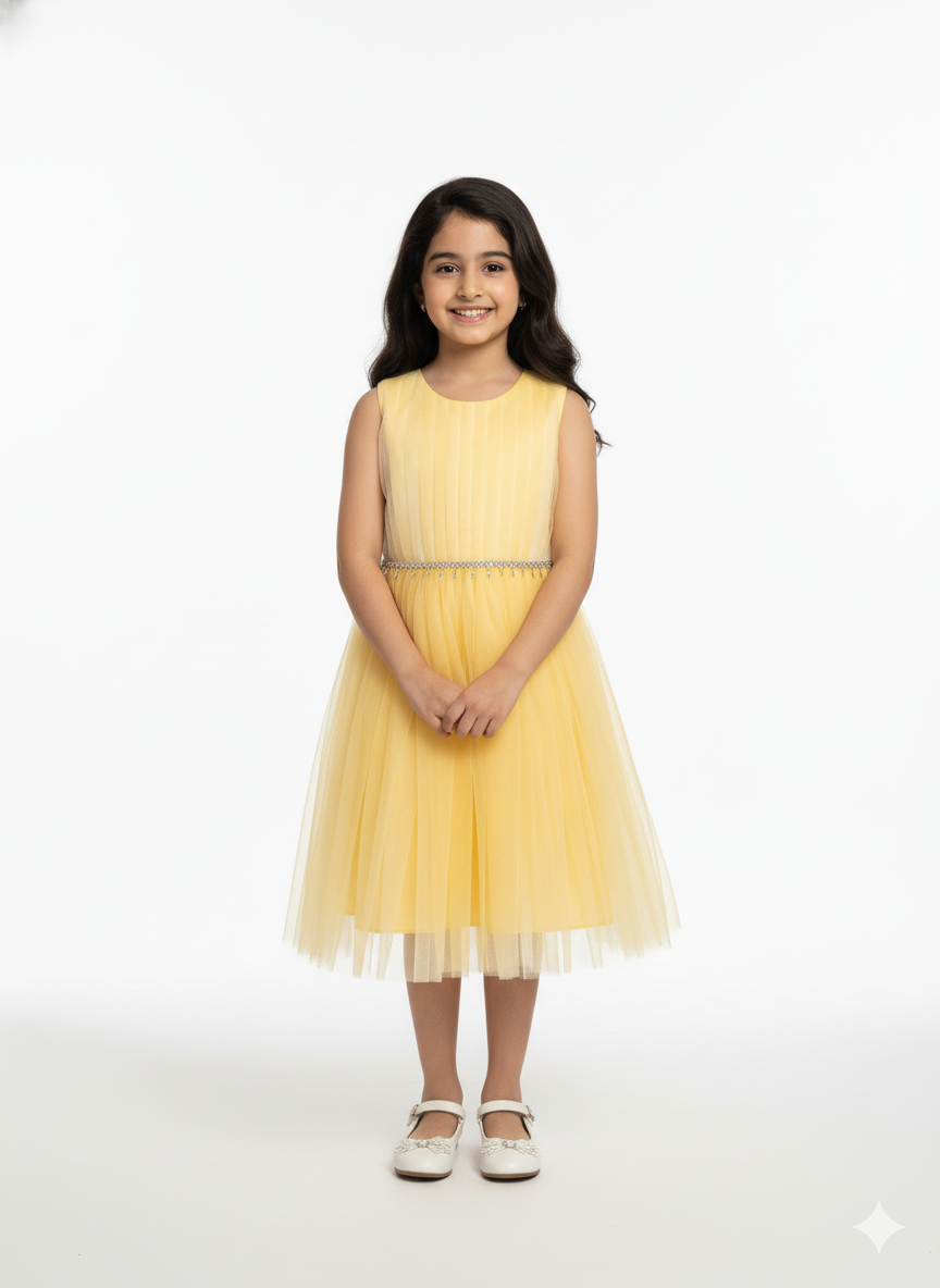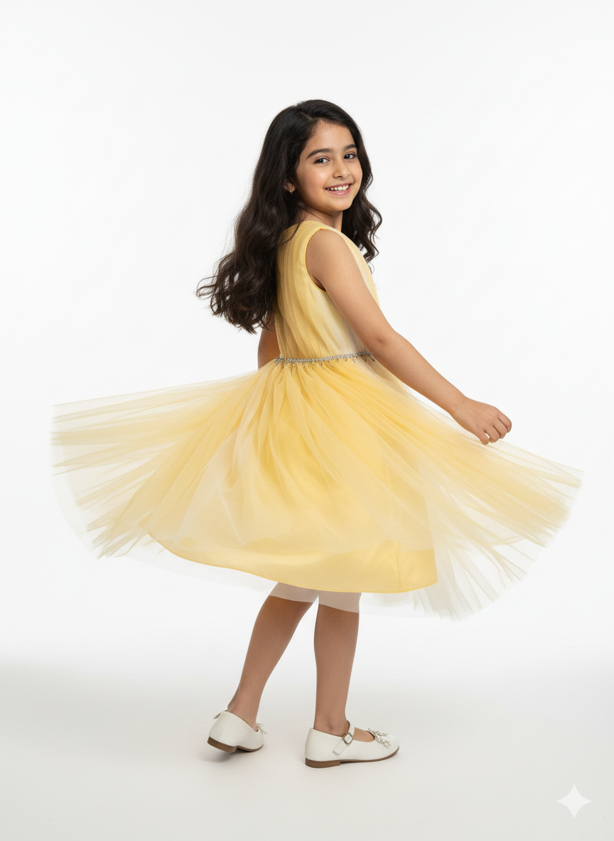 Radiate pure joy in this enchanting yellow tulle dress, a luminous choice for every grand celebration.