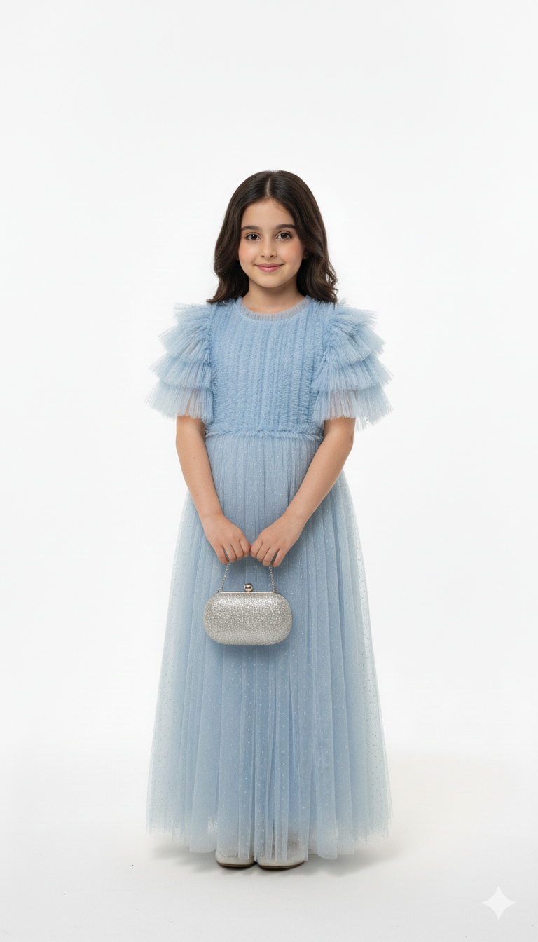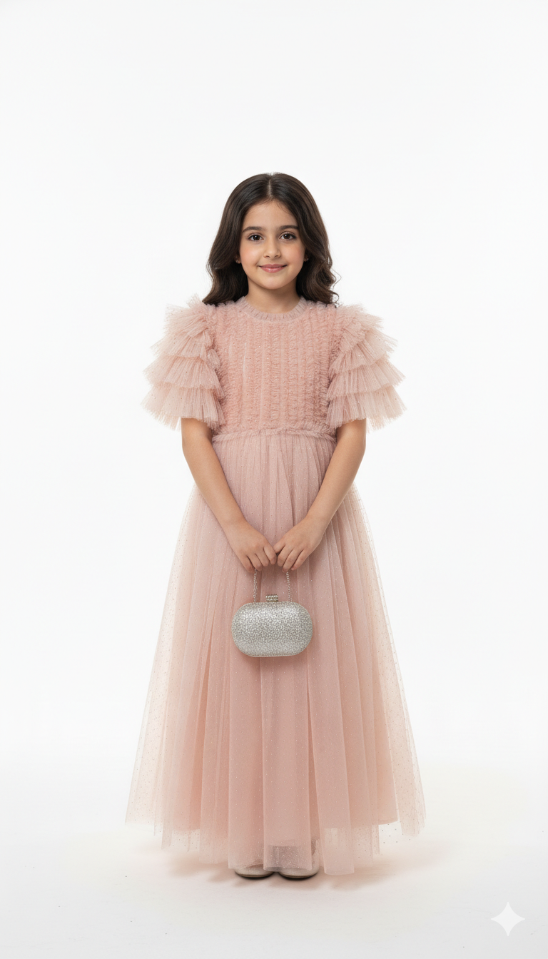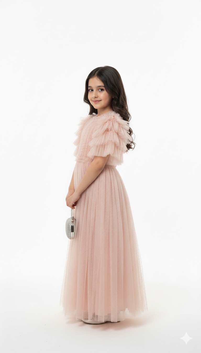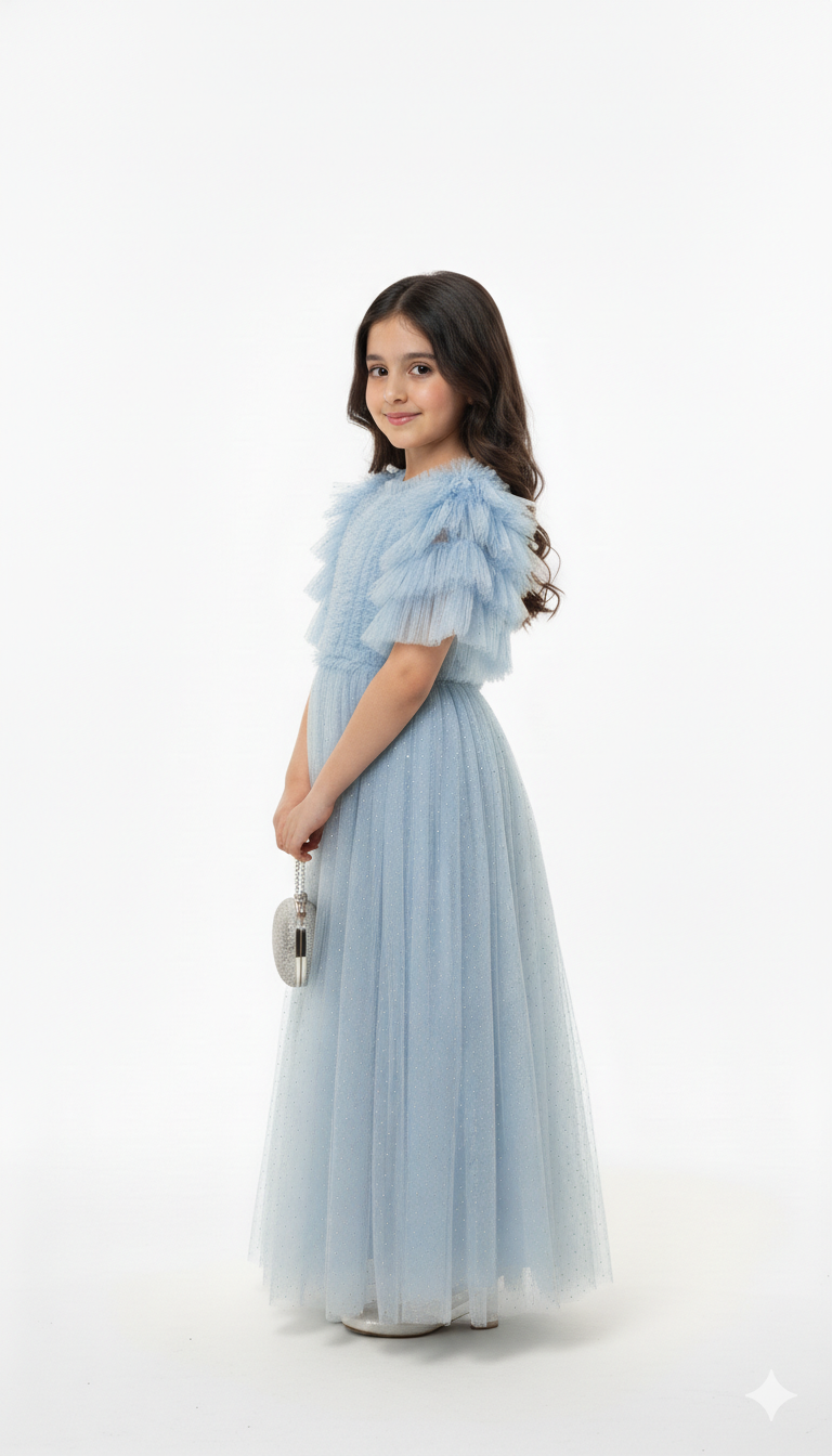 Elegant kids frock crafted entirely in soft, flowing tulle for a dreamy look.”